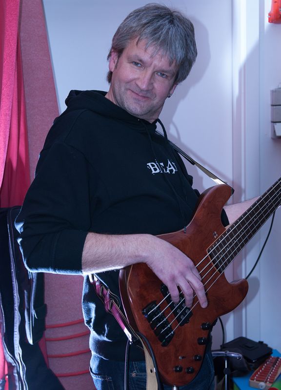 MICHI zupft bei den Sandbürgern die E-Bass-Saiten und prägt damit maßgeblich den Sound und besonders die Grooves der Songs. Mit flinken Fingern segelt er über die Saiten und entlockt den gespannten Drähten Klänge, die den Zuhörern direkt ins Bein gehen.